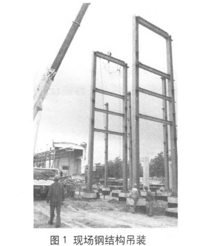 在石油化工裝置新建、改造升級過程中,新建廠房、框架經(jīng)常需要安裝鋼結(jié)構(gòu),立柱、成片鋼結(jié)構(gòu)在地面預(yù)制,吊裝過程中需要翻身直立。鋼結(jié)構(gòu)主吊點(diǎn)一般采用捆綁式(鋼絲繩吊索、卸扣捆綁連接)吊點(diǎn)或焊接板式吊耳進(jìn)行吊裝,但吊裝結(jié)束后必須拆卸吊索具,如圖1所示。