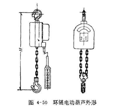 環鏈電動葫蘆是近幾年發展起來的小型輕便提升工具。它的主要特點是體積小,自重輕,操作靈活,可代替手拉葫蘆,特別是能實現多臺集中控制,節省勞動力。環鏈電動葫蘆的外形如圖4-50