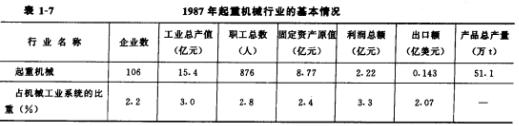 表1-7列出了1987年起重機械行業經綜合評價后的基本情況。