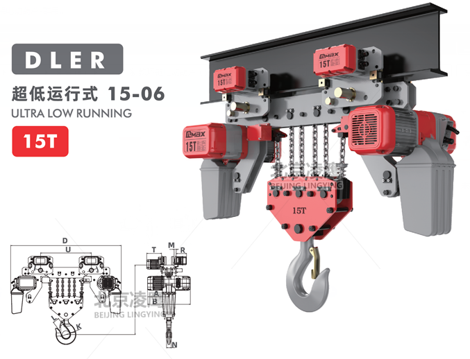 15噸DLEK環鏈電動葫蘆超低運行式技術優勢:擺線傳動更精密 雙限位設計更可靠 離合器前置電機更安全 核心專利13項