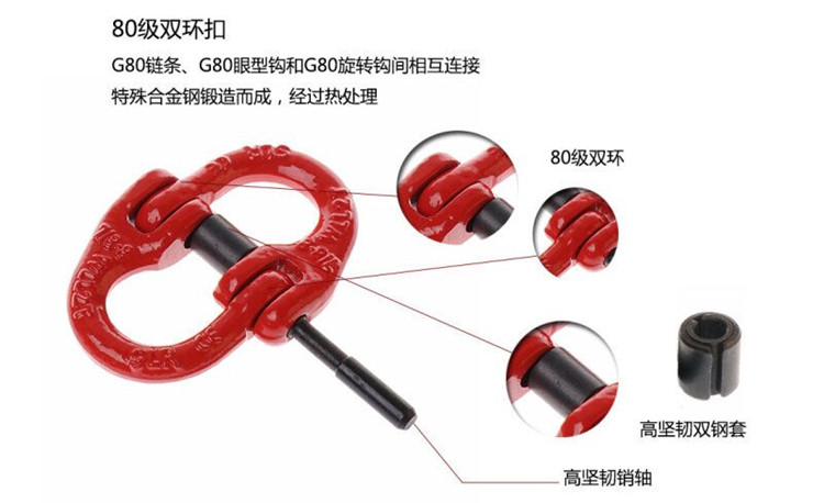 蝴蝶扣/雙環扣采用優質碳素結構鋼或合金結構鋼鍛造并進行熱處理而成,具有體積小、重量輕、強度高等特點, 最大試驗載荷為額定載荷的2倍,最小破斷載荷為額定載荷的4倍。本產品嚴格按國家3包執行,產品質量由中國人民保險公司(PICC)承保,請放心使用。